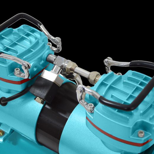 Dieser Dieser öl- und wartungsfreie Airbrush Kompressor DUO-POWER II ist ein Zwei-Zylinder-Kolben-Kompressor mit Lufttank und einer Druckluftreserve von 3,5 Litern. Der Airbrush Kompressor ist für Arbeiten mit allen handelsüblichen Airbrush-Pistolen und Airbrush-Farben geeignet. Mit nur 50 dB ermöglicht er angenehmes, leises Arbeiten auch in kleineren, geschlossenen Räumen.
