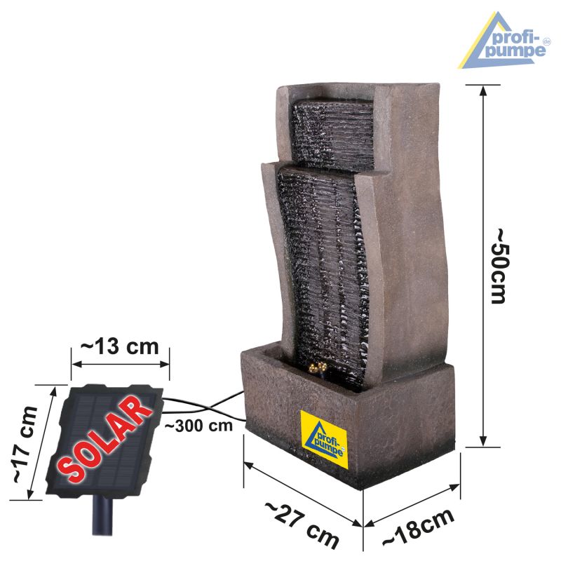 Individuelle PlatzierungDiesen Gartenbrunnen können Sie an jeder Stelle in Ihrem Garten platzieren. Sie sind an keine Steckdose gebunden und das lästige Verlegen des 230V-Kabels entfällt. Außerdem können Sie das Solarsystem nach Ihrem Geschmack effektvoll Positionieren. Eine sichere Nutzung ist durch den Anschluss an das Solarpanel gegeben (gegenüber der 230V Steckdose). Sparen Sie sich den Ärger mit den durch Nagetiere beschädigten Kabeln und dadurch verursachten Stromausfällen. Bitte bedenken Sie, dass das Solarpanel stets im vollen Sonnenlicht zu platzieren und auszurichten ist, da sonst keine Pumpenfunktion garantiert werden kann.