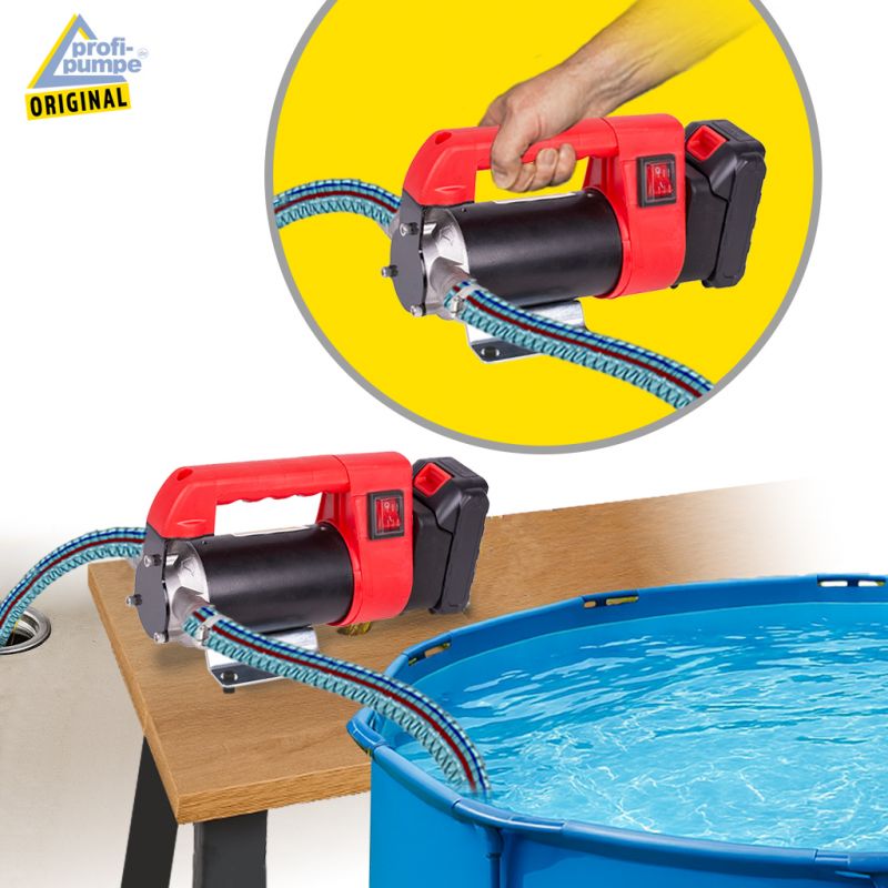 Der kräftige Motor wird durch einen 24-Volt LiIon-Akku angetrieben. LiIon-Akkus zeichen sich durch äußerst geringe Selbstentladung und fast keinen "Memory-Effekt" aus. Dadurch bleibt die volle Akku-Leistung auch nach Jahren vorhanden und die Pumpe ist stets schnell einsatzbereit.