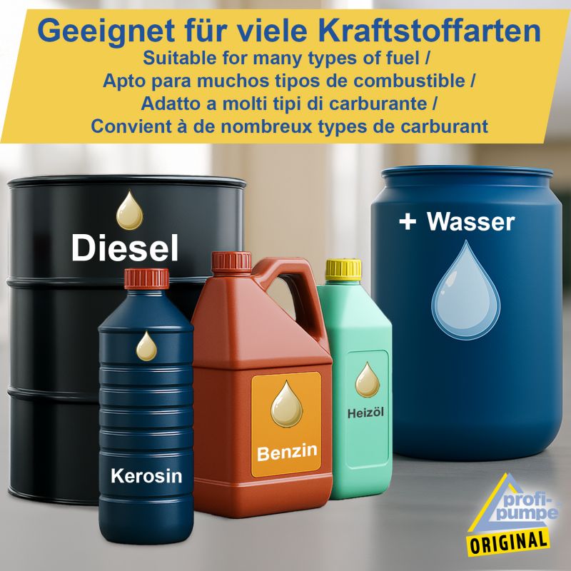 - Für Kerosin, Benzin, Diesel, Heiz- und Schmieröle, Petroleum, Fäkalien