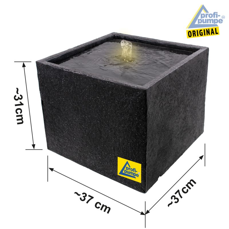 Der moderne Zierbrunnen mit LED-Beleuchtung ist für den 230-Volt-Betrieb vorgesehen. Die Pumpe und die LEDs werden mit sicherer 9V-Niederspannung betrieben (Adapter im Lieferumfang enthalten). Alle Kabelverbindungen sind verpolungssicher, wasserdicht und absolut funktionssicher. Dank praktischer Steckverbindungen sind alle Komponenten jederzeit austauschbar. So können Sie den Wasserbrunnen BASALT-MODERNA-2 und das fließende Wasser jahrelang genießen!