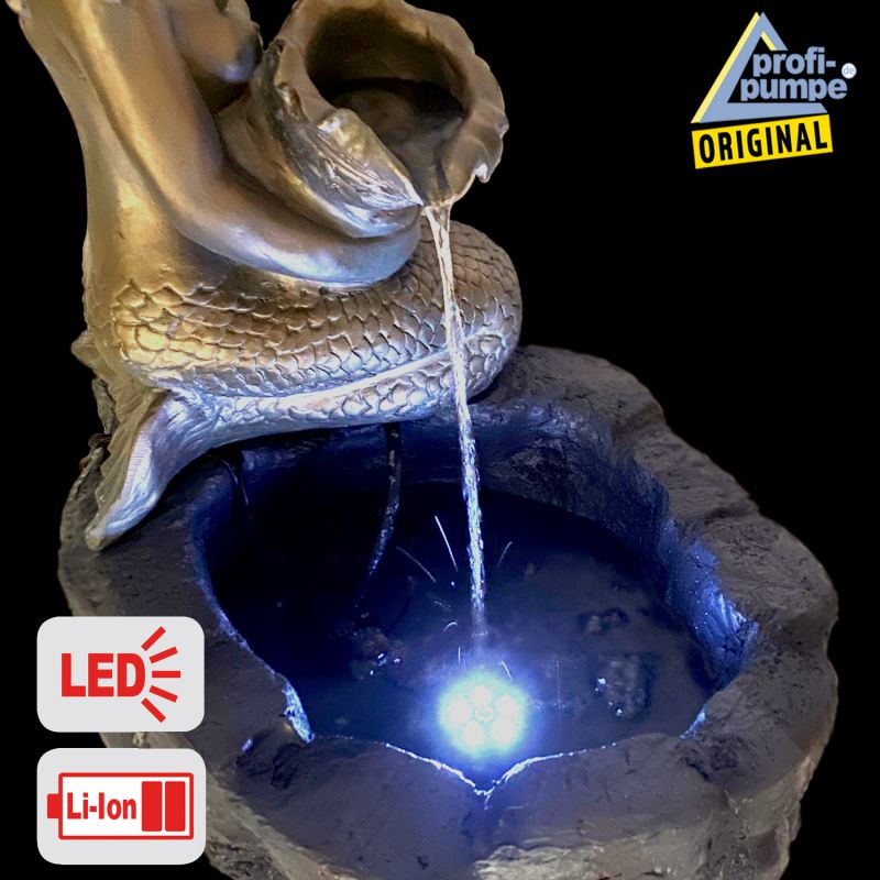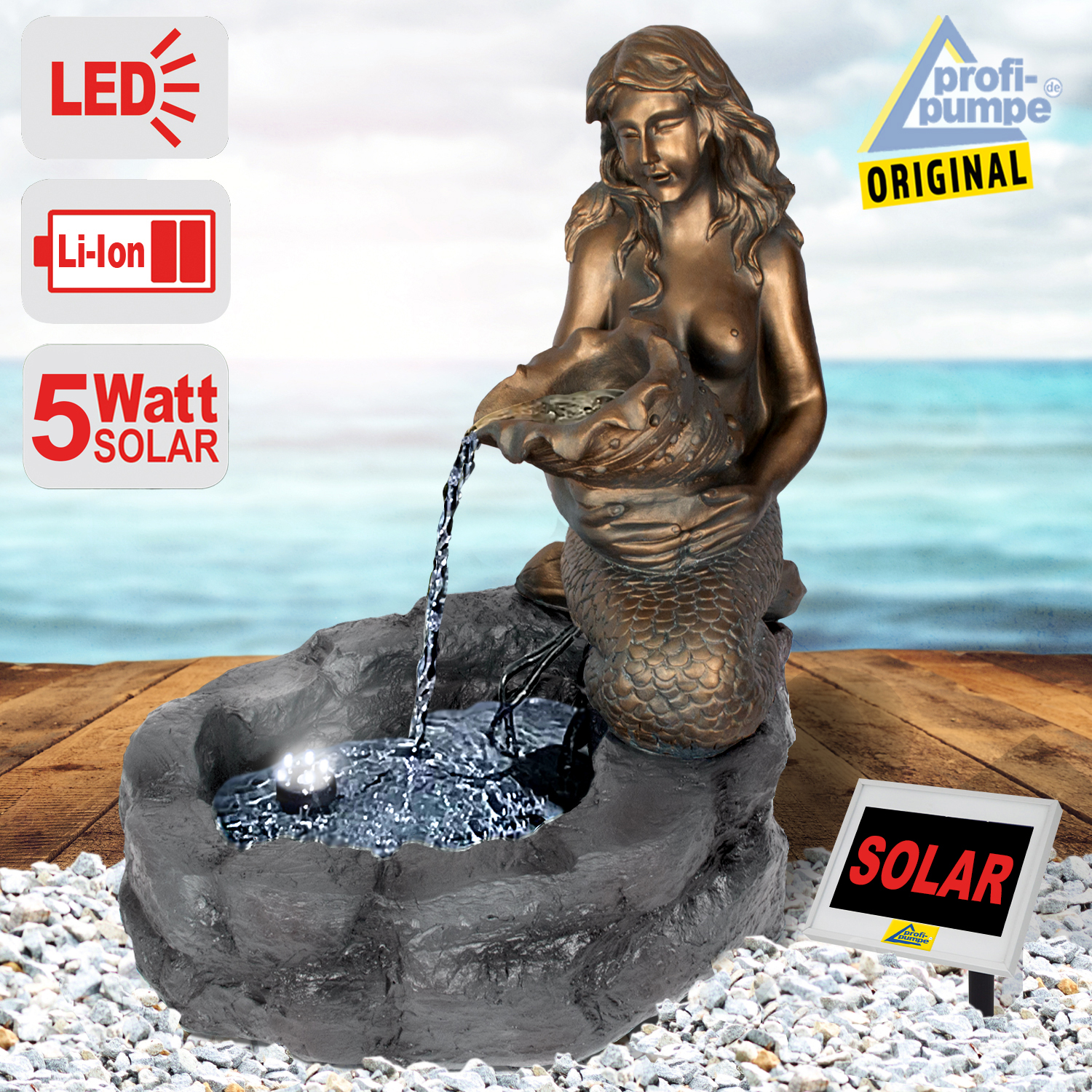 Das Solar-Teichpumpen-Set "Meerjungfrau am Teich-3" setzt die Kraft der Sonne in fließendes Wasser um. Es schafft durch das Wasserspiel eine beruhigende Geräuschkulisse im Garten, auf dem Balkon oder der Terrasse und wertet die Umgebung optisch auf. Ein Hingucker und mehr als nur Dekoration! Die Meerjungfrau und das Rauschen des Wassers verleihen Ihrem Außenbereich eine besondere Note und das im Sonnenlicht funkelnde Wasser ist stets der perfekte Blickfang. Fließendes Wasser sorgt für noch mehr Wohlgefühl in Ihrem Garten und schafft ein angenehmes Mikroklima an heißen Sommertagen.