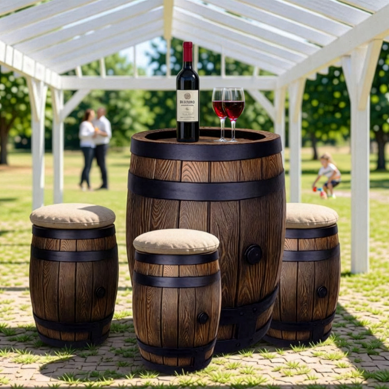Unsere rustikalen "Eichen-Fässer" in voller Schönheit! Als Regentonne, als Garten-Theke, als Ordnungskiste für Spielzeug oder Gartenutensilien oder...oder...oder... Ein Schmuckstück für Heim und Garten - und nützlich! Diese Regentonne überzeugt nicht nur in Funktion, sondern auch im Design und den langlebigen Produkteigenschaften. Durch das einzigartige Herstellungsverfahren wurde die Holzstruktur nicht nur optisch, sondern auch fühlbar nachgebildet. Sie werden begeistert sein! Die Regentonne Eichenfass ist eine einmalige Anschaffung, die selbst nach Jahren noch dauerhaft dicht und witterungsbeständig ist.